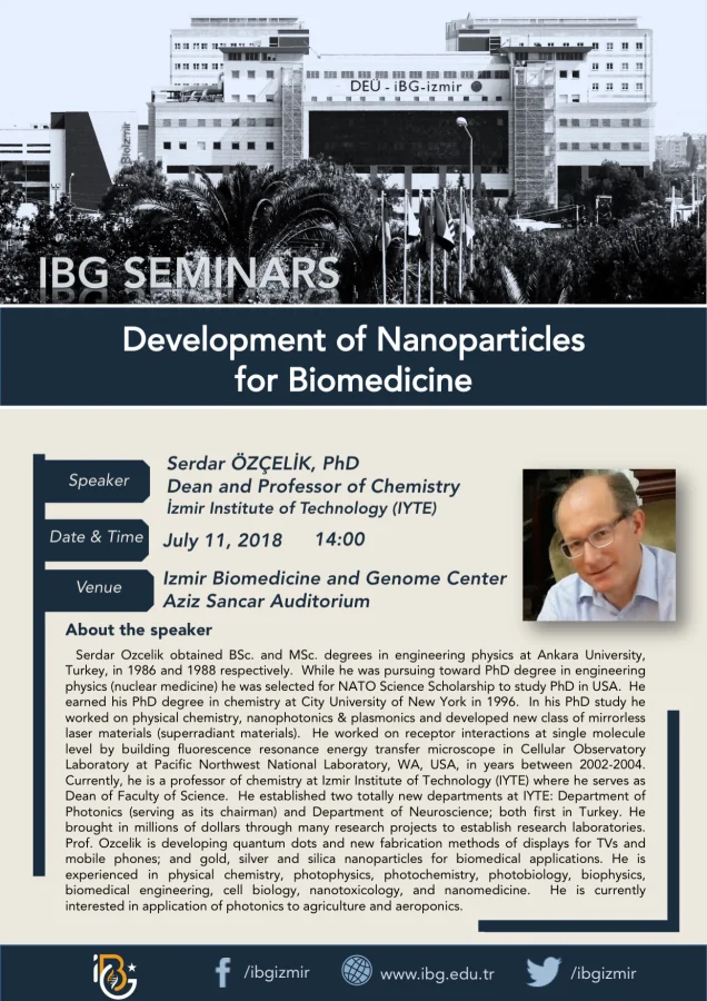 Subject Area(s): nanoparticles, biomedicineLocation: Aziz Sancar Auditorium, IBGContact: Berrak SOHTORİK