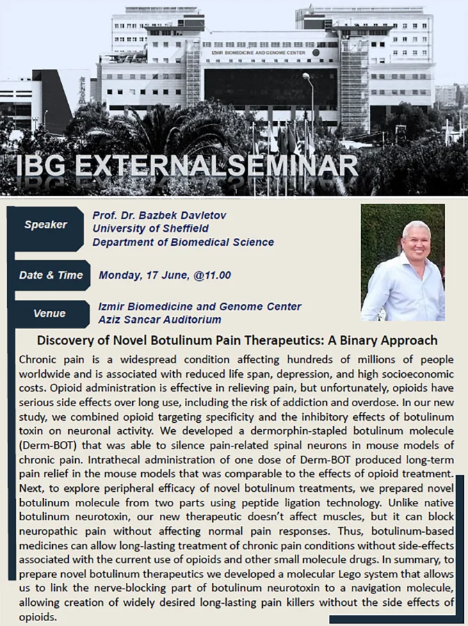 Subject Area(s): Chronic Pain, Mouse Models, TherapeuticsLocation: Aziz Sancar Auditorium, IBGContact: Arif Engin ÇETİN
