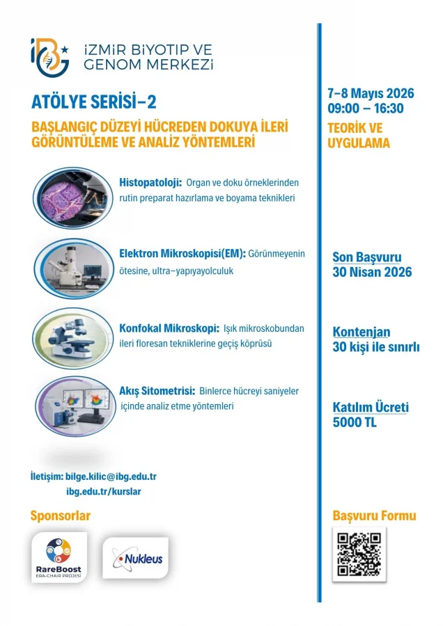 An "Introductory Level from Cell to Tissue: Advanced Imaging and Analysis Methods" course will be held at the Izmir Biomedicine and Genome Center on May 7-8, 2026.