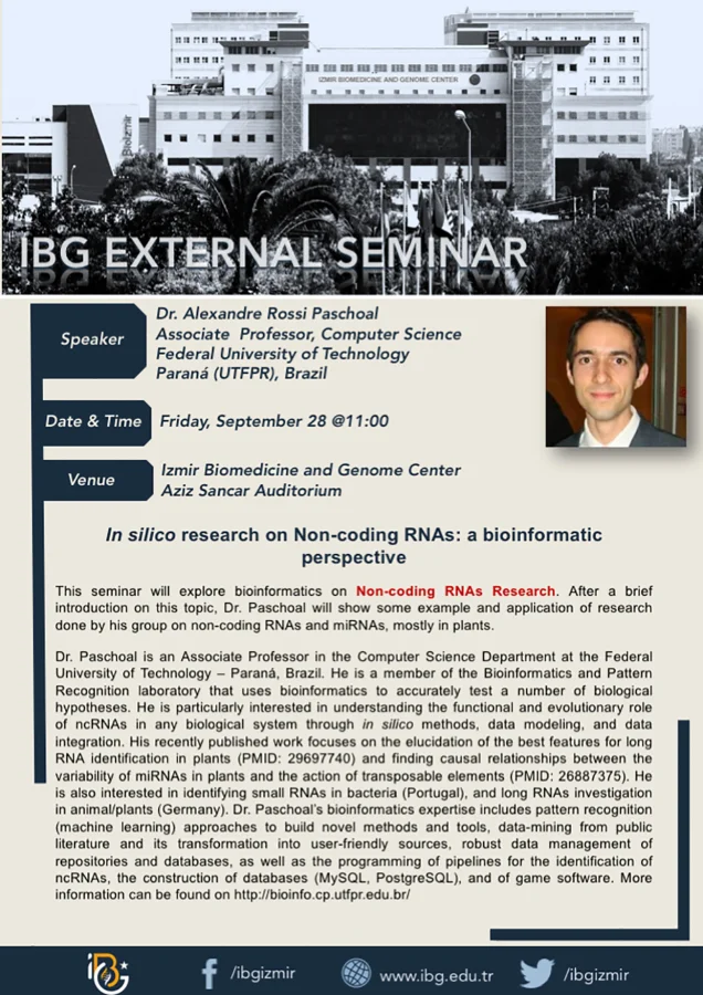 Subject Area(s): Non-coding RNA, BioinformaticsLocation: Aziz Sancar Auditorium, IBGContact: Berrak SOHTORİK