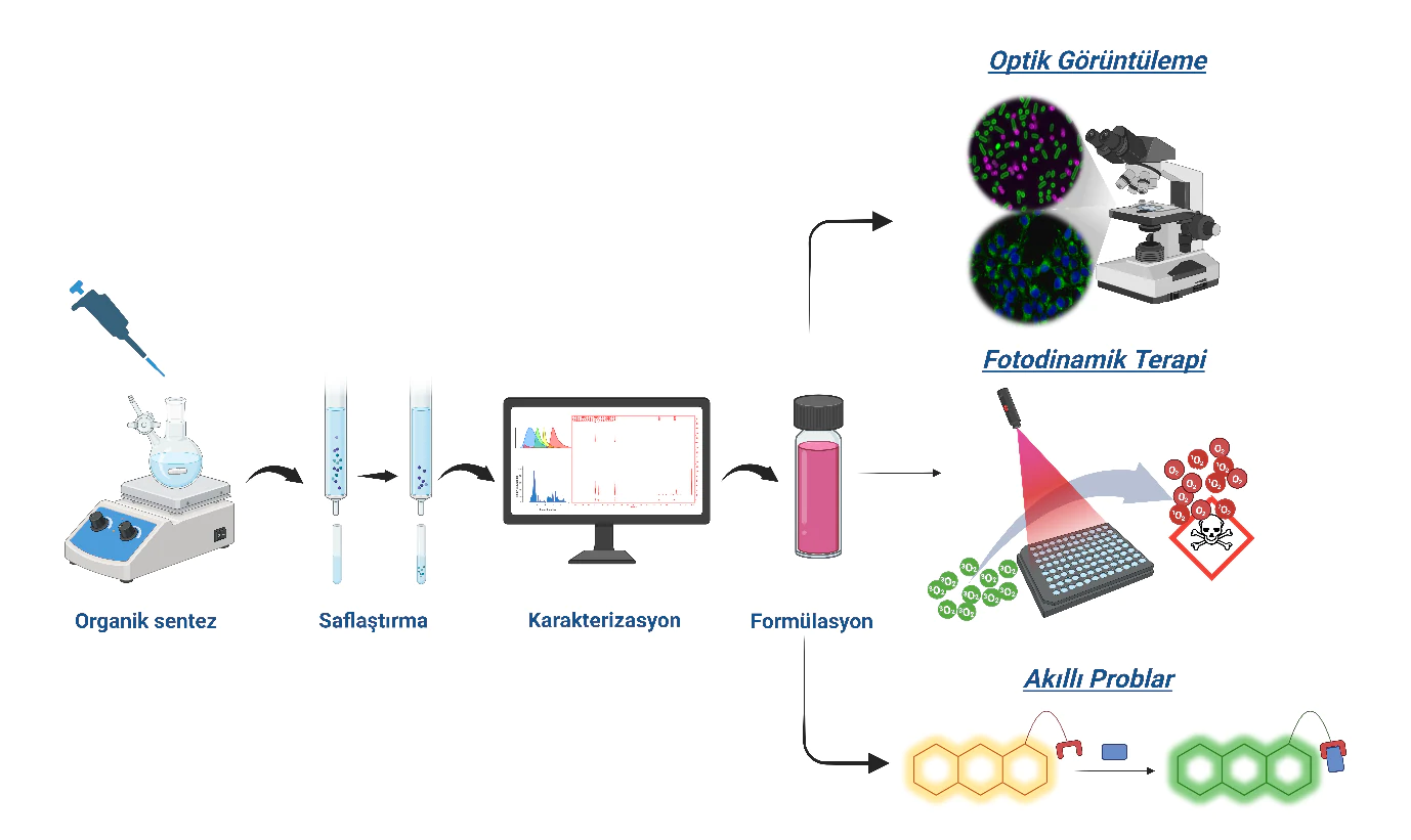 Research is conducted on the development of fluorescence-based sensors for optical imaging of cancer and pathogen-induced infections. Within this scope, imaging agents with high selectivity and sensitivity are designed using various platforms such as organic small molecules and nanoparticle-based systems.