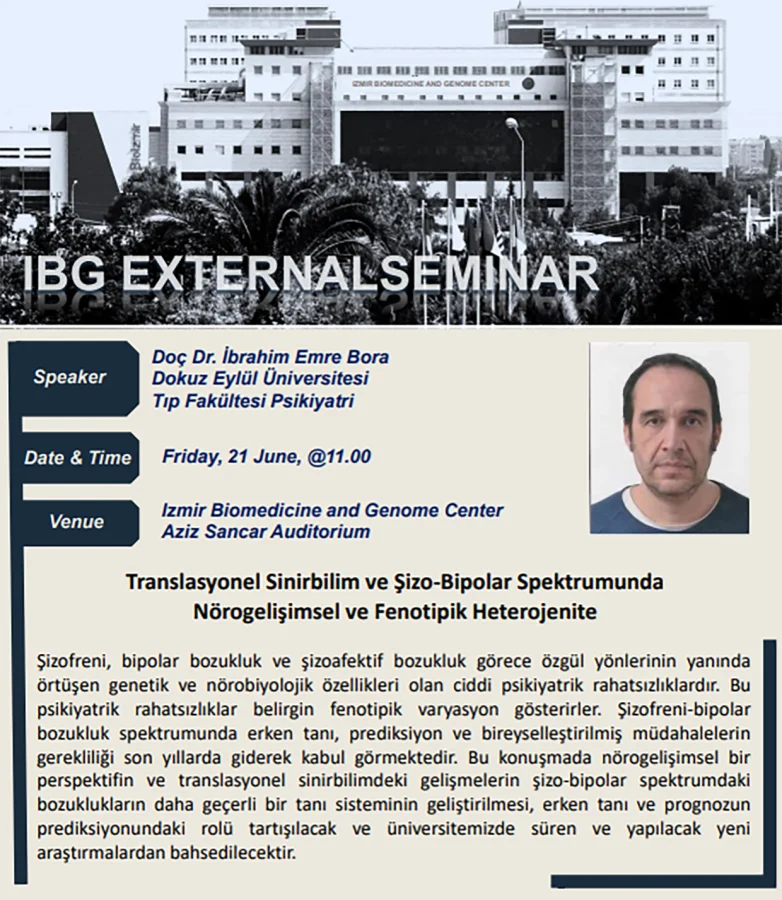 Subject Area(s): Schizophrenia, Bipolar disorder, NeuroscienceLocation: Aziz Sancar Auditorium, IBGContact: Arif Engin ÇETİN