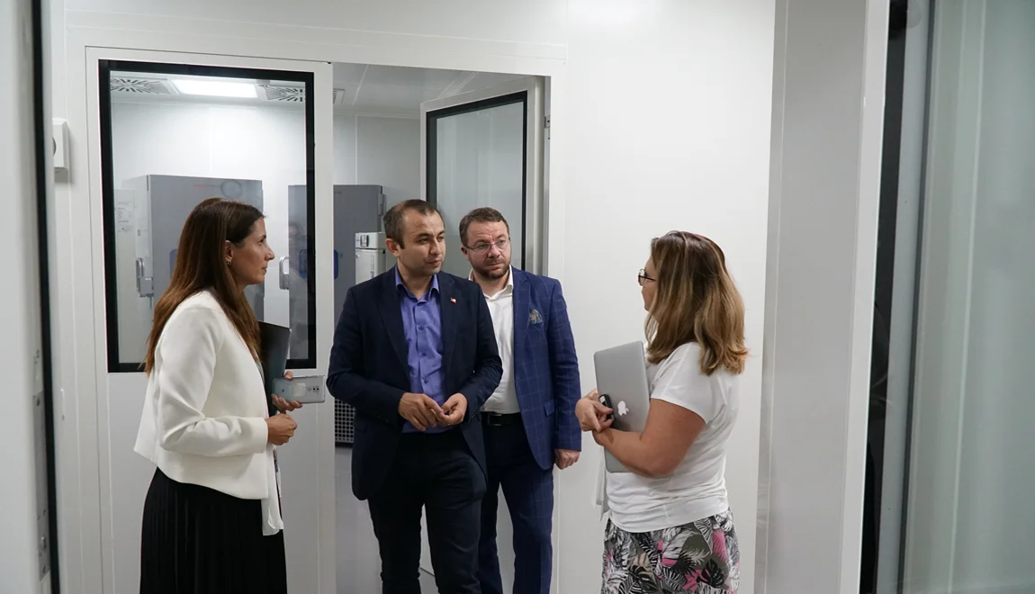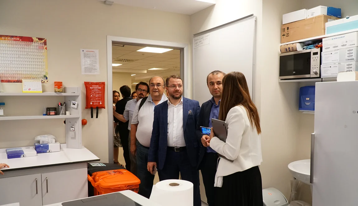 The visit which took place on Monday 19 August 2019 commenced with Director Prof. Dr. Mehmet Öztürk’s presentation of IBG as a National Public Research Center within the scope of Law No. 6550. As part of Technological Research, IBG Director Prof. Dr. Mehmet Öztürk gave information on Novel Anti-HER2 Antibodies, and the following IBG Researchers gave information on their respective topics: Prof. Dr. Esra Erdal on the IBG-Nevcell Platform, Prof. Dr. Hülya Ayar Kayalı on Ovarian Cancer Diagnostic Kit, Prof. Dr. Neşe Atabey on IBG Biobank, Assoc. Prof. Serhat Tozburun on Biophotonics and Optical Imaging Techniques, Dr. Arif Engin Çetin on Nanophotonics and Biodetection Systems, Dr. Gülçin Çakan on Zebrafish Model and DiagnosisTechnologies, Dr. Serap Erkek on the IBG-Bioinformatics Platform, IBG Assistant Director Dr. Soner Gündemir on the IBG-Farma Platform. Following the presentations, guests had the opportunity to visit the research and innovation laboratories which include IBG’s GLP, GMP and Biopharma units. The visit concluded with wishes of cooperation between TÜSEB and IBG.